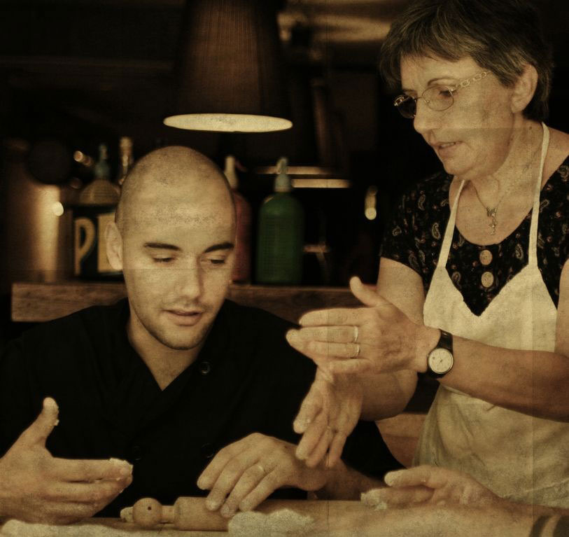 Siempre he visto a mi mama, a mis abuelas y a todas las mujeres de mi familia en acción cocinando. Desde que era un niño. Se cocinaba para preparar la cena o para guardar en el sótano, las conservas según la temporada: mermeladas, tomates triturados, fruta en almibar, cada temporada tiene su fruta para ser recogida y almacenada para los tiempos futuros. En los meses mas frios se cocinaban los estofados (“al stracót”) quando mi padre volvia de la caceria y se hacia la matanza del cerdo para preparar salami, prosciutti, culatelli, coppe y todos aquellos embutidos que venian puestos a curarse en las bodegas con sus grandes ventanas orientadas al norte para que la niebla y la humedad inundaran el sitio y permitir así esa curacion tan caracteristica de la zona. Todas estas recetas vienen ahora propuestas aquí en el Dai Mo! Expresando estos antiguos rituales hecho por movimientos y gestos repetidos infinitas veces por mi familia!